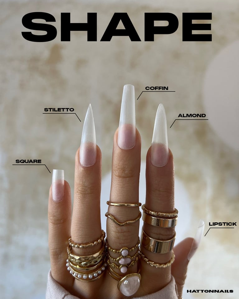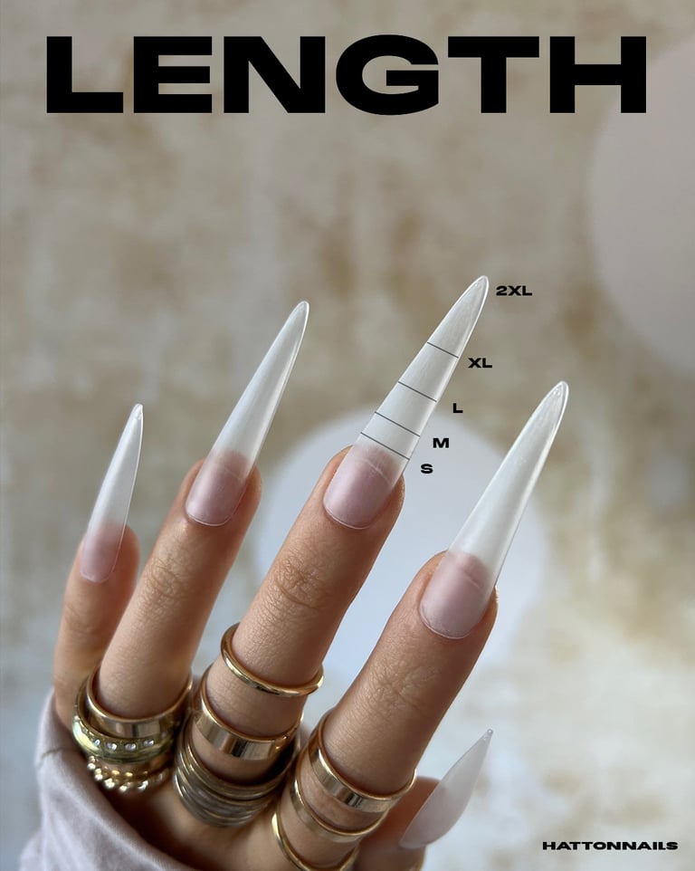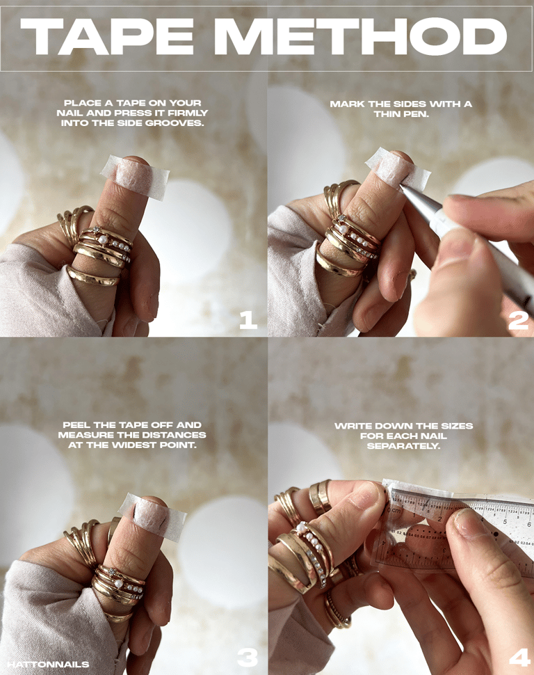 THIS PAGE SHOWS YOU HOW TO MEASURE YOUR NAILS AND OFFERS A VISUAL OVERVIEW OF DIFFERENT SHAPES AND LENGTHS.